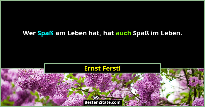 Wer Spaß am Leben hat, hat auch Spaß im Leben.