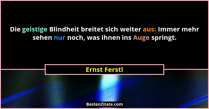 Die geistige Blindheit breitet sich weiter aus: Immer mehr sehen nur noch, was ihnen ins Auge springt.