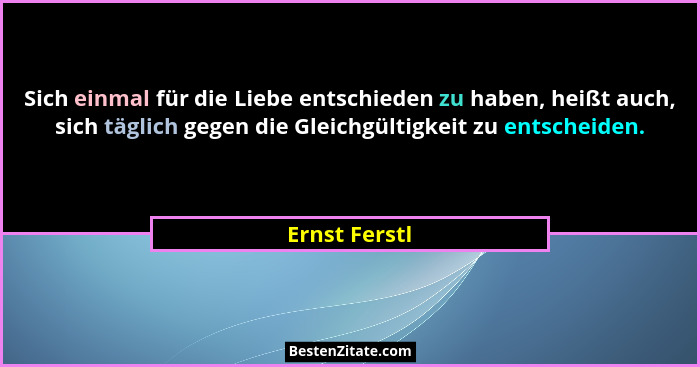 Sich einmal für die Liebe entschieden zu haben, heißt auch, sich täglich gegen die Gleichgültigkeit zu entscheiden.