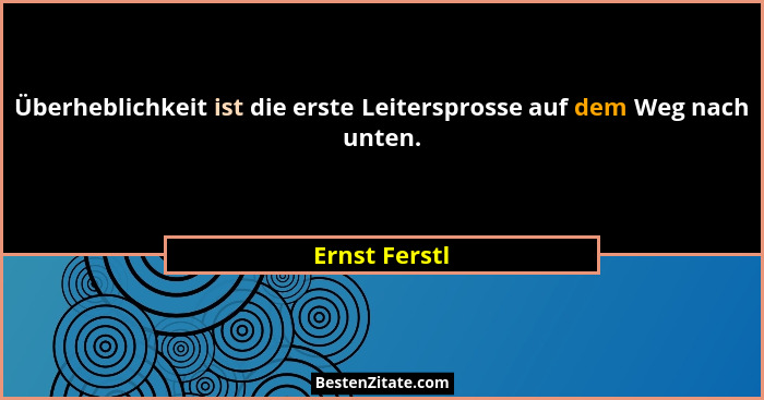 Überheblichkeit ist die erste Leitersprosse auf dem Weg nach unten.