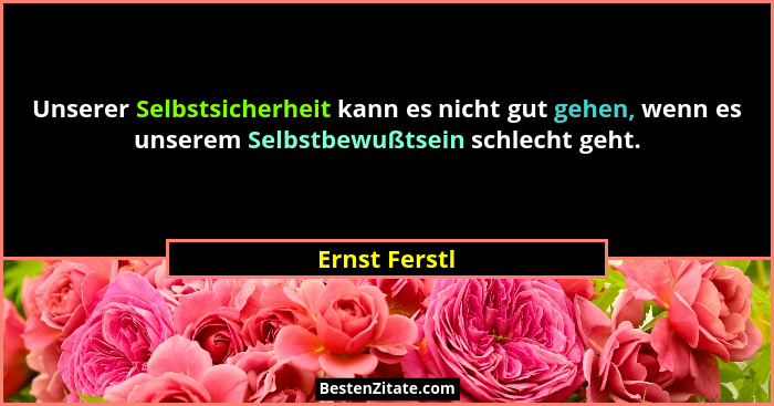 Unserer Selbstsicherheit kann es nicht gut gehen, wenn es unserem Selbstbewußtsein schlecht geht.