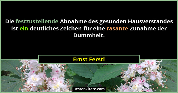 Die festzustellende Abnahme des gesunden Hausverstandes ist ein deutliches Zeichen für eine rasante Zunahme der Dummheit.