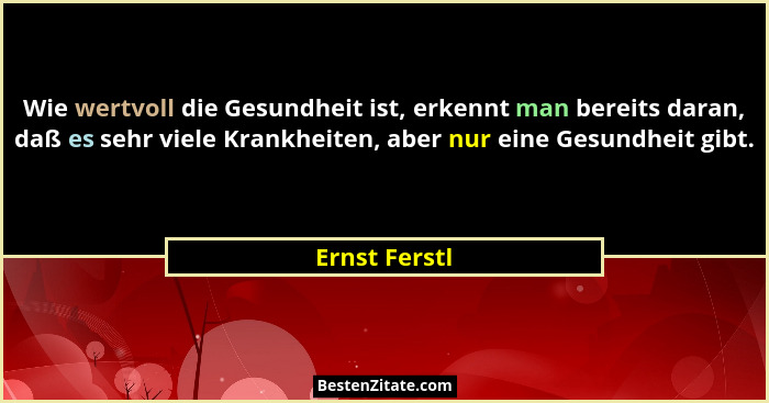 Wie wertvoll die Gesundheit ist, erkennt man bereits daran, daß es sehr viele Krankheiten, aber nur eine Gesundheit gibt.