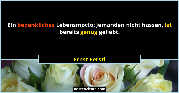 Ein bedenkliches Lebensmotto: Jemanden nicht hassen, ist bereits genug geliebt.