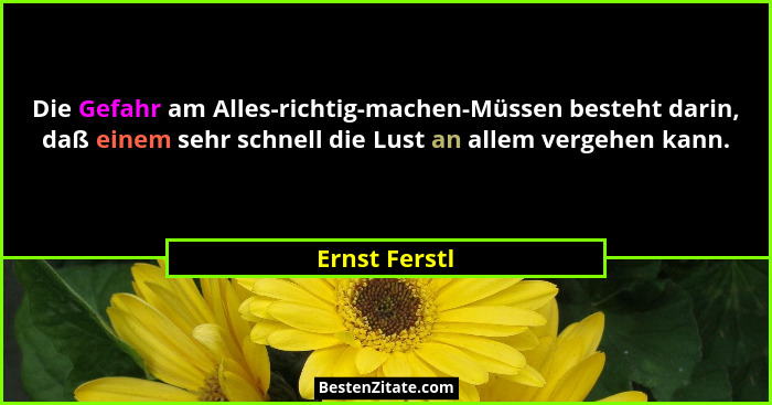 Die Gefahr am Alles-richtig-machen-Müssen besteht darin, daß einem sehr schnell die Lust an allem vergehen kann.