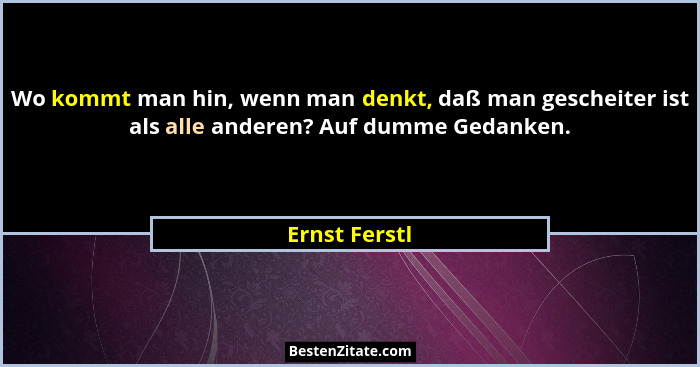 Wo kommt man hin, wenn man denkt, daß man gescheiter ist als alle anderen? Auf dumme Gedanken.