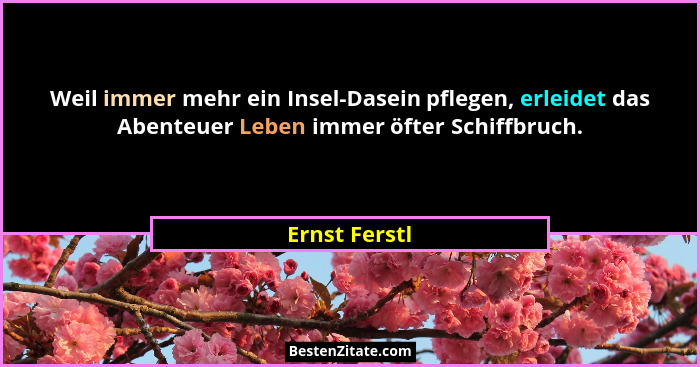 Weil immer mehr ein Insel-Dasein pflegen, erleidet das Abenteuer Leben immer öfter Schiffbruch.