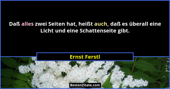 Daß alles zwei Seiten hat, heißt auch, daß es überall eine Licht und eine Schattenseite gibt.