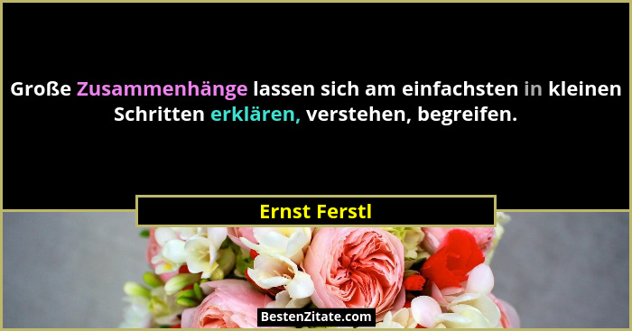 Große Zusammenhänge lassen sich am einfachsten in kleinen Schritten erklären, verstehen, begreifen.