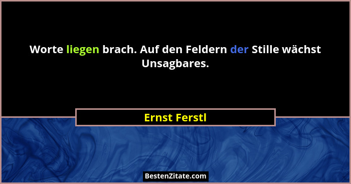 Worte liegen brach. Auf den Feldern der Stille wächst Unsagbares.