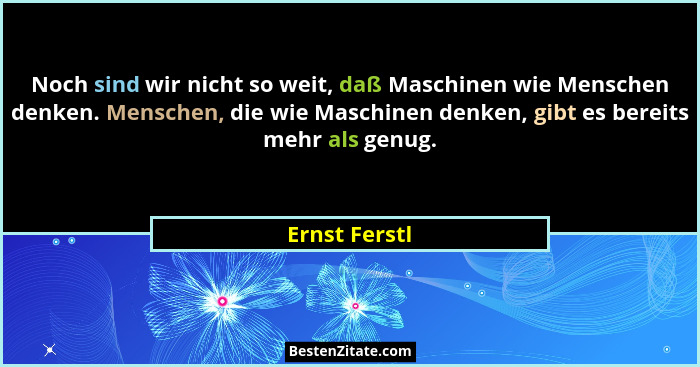 Noch sind wir nicht so weit, daß Maschinen wie Menschen denken. Menschen, die wie Maschinen denken, gibt es bereits mehr als genug.