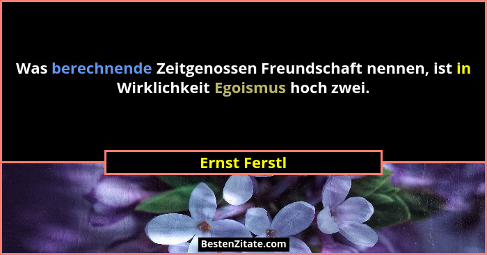 Was berechnende Zeitgenossen Freundschaft nennen, ist in Wirklichkeit Egoismus hoch zwei.