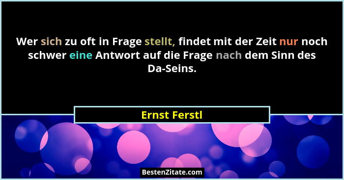 Wer sich zu oft in Frage stellt, findet mit der Zeit nur noch schwer eine Antwort auf die Frage nach dem Sinn des Da-Seins.