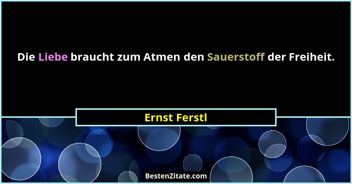 Die Liebe braucht zum Atmen den Sauerstoff der Freiheit.