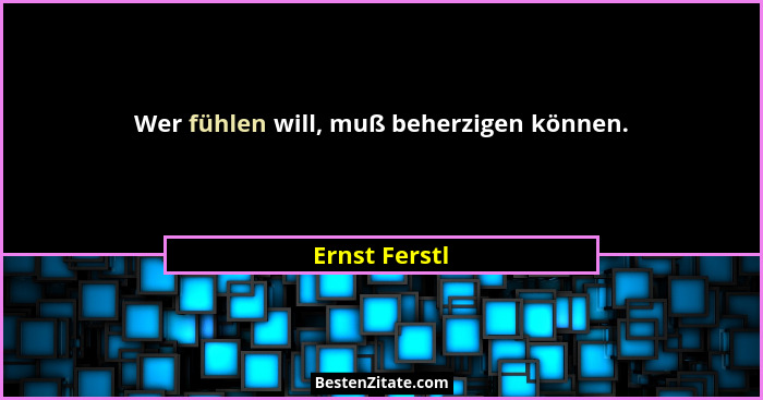 Wer fühlen will, muß beherzigen können.