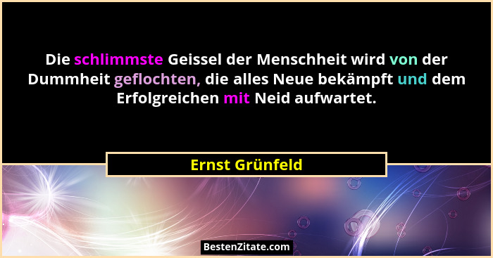 Die schlimmste Geissel der Menschheit wird von der Dummheit geflochten, die alles Neue bekämpft und dem Erfolgreichen mit Neid aufwartet.