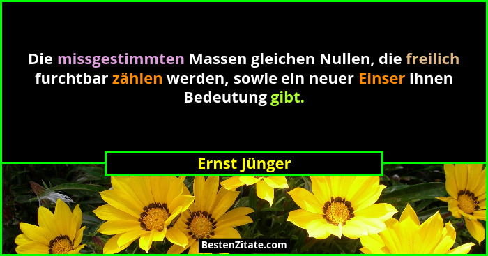 Die missgestimmten Massen gleichen Nullen, die freilich furchtbar zählen werden, sowie ein neuer Einser ihnen Bedeutung gibt.
