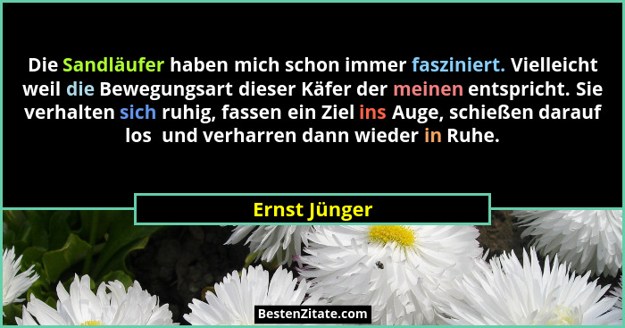 Die Sandläufer haben mich schon immer fasziniert. Vielleicht weil die Bewegungsart dieser Käfer der meinen entspricht. Sie verhalten sich ruhig, fassen ein Ziel ins Auge, schießen darauf los und verharren dann wieder in Ruhe.