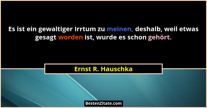 Es ist ein gewaltiger Irrtum zu meinen, deshalb, weil etwas gesagt worden ist, wurde es schon gehört.