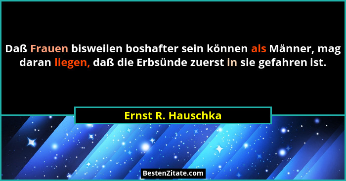 Daß Frauen bisweilen boshafter sein können als Männer, mag daran liegen, daß die Erbsünde zuerst in sie gefahren ist.
