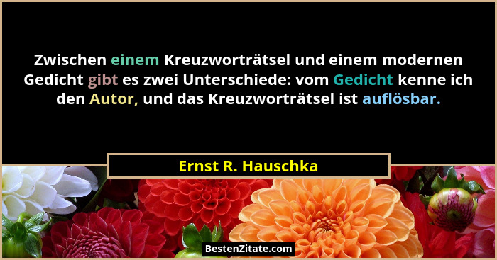 Zwischen einem Kreuzworträtsel und einem modernen Gedicht gibt es zwei Unterschiede: vom Gedicht kenne ich den Autor, und das Kreuzworträtsel ist auflösbar.