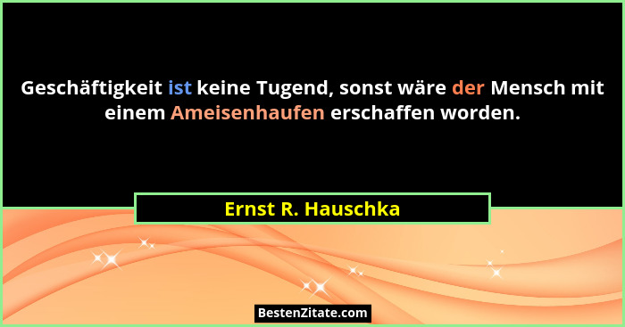 Geschäftigkeit ist keine Tugend, sonst wäre der Mensch mit einem Ameisenhaufen erschaffen worden.