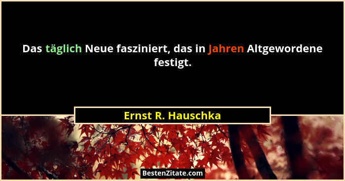 Das täglich Neue fasziniert, das in Jahren Altgewordene festigt.