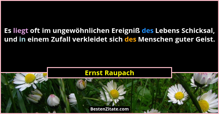 Es liegt oft im ungewöhnlichen Ereigniß des Lebens Schicksal, und in einem Zufall verkleidet sich des Menschen guter Geist.