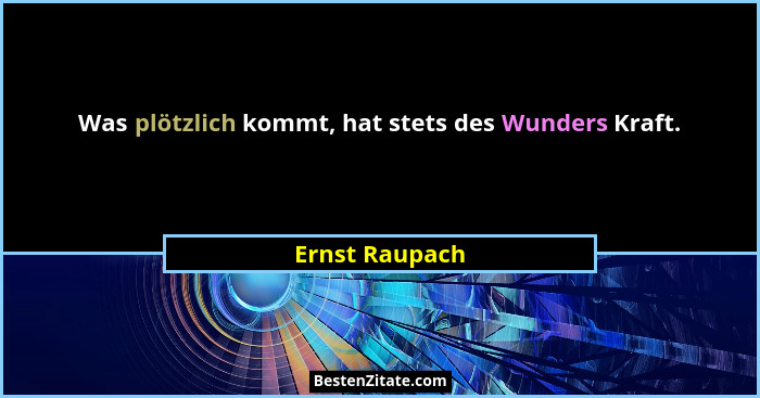 Was plötzlich kommt, hat stets des Wunders Kraft.