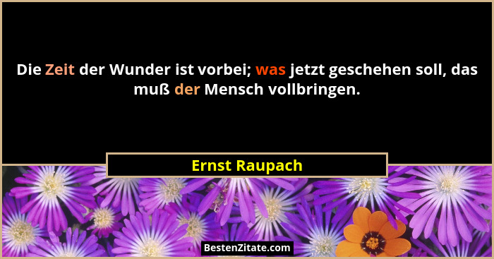 Die Zeit der Wunder ist vorbei; was jetzt geschehen soll, das muß der Mensch vollbringen.