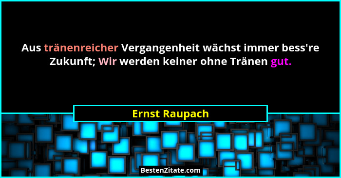 Aus tränenreicher Vergangenheit wächst immer bess're Zukunft; Wir werden keiner ohne Tränen gut.