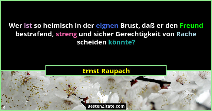 Wer ist so heimisch in der eignen Brust, daß er den Freund bestrafend, streng und sicher Gerechtigkeit von Rache scheiden könnte?