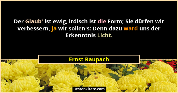 Der Glaub' ist ewig, irdisch ist die Form; Sie dürfen wir verbessern, ja wir sollen's: Denn dazu ward uns der Erkenntnis Licht.