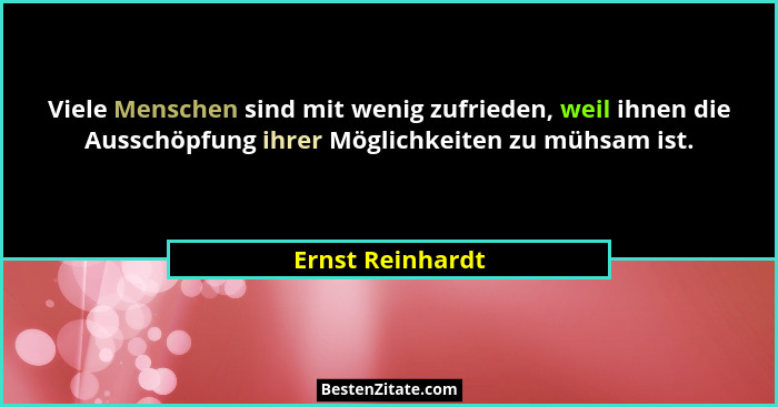 Viele Menschen sind mit wenig zufrieden, weil ihnen die Ausschöpfung ihrer Möglichkeiten zu mühsam ist.