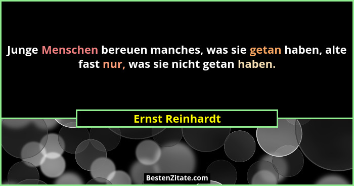 Junge Menschen bereuen manches, was sie getan haben, alte fast nur, was sie nicht getan haben.