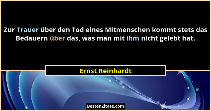 Zur Trauer über den Tod eines Mitmenschen kommt stets das Bedauern über das, was man mit ihm nicht gelebt hat.