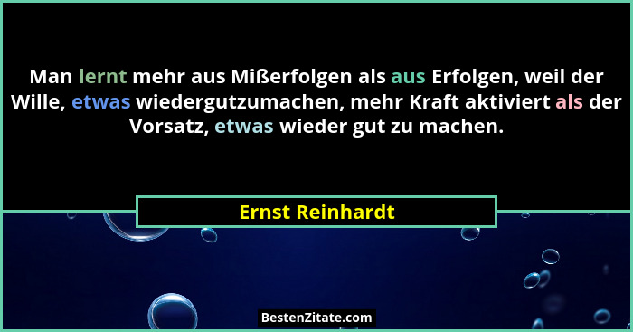 Man lernt mehr aus Mißerfolgen als aus Erfolgen, weil der Wille, etwas wiedergutzumachen, mehr Kraft aktiviert als der Vorsatz, etwas wieder gut zu machen.