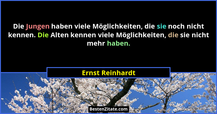 Die Jungen haben viele Möglichkeiten, die sie noch nicht kennen. Die Alten kennen viele Möglichkeiten, die sie nicht mehr haben.