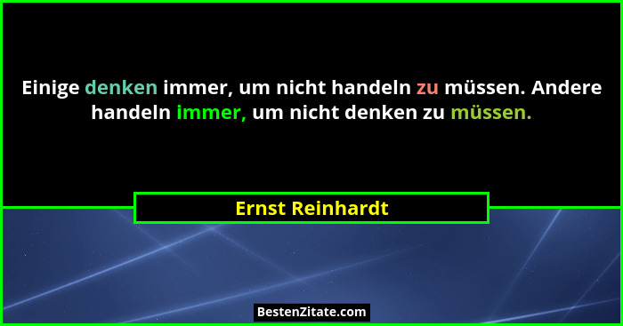 Einige denken immer, um nicht handeln zu müssen. Andere handeln immer, um nicht denken zu müssen.