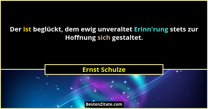 Der ist beglückt, dem ewig unveraltet Erinn'rung stets zur Hoffnung sich gestaltet.