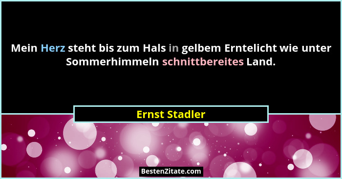Mein Herz steht bis zum Hals in gelbem Erntelicht wie unter Sommerhimmeln schnittbereites Land.