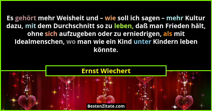 Es gehört mehr Weisheit und – wie soll ich sagen – mehr Kultur dazu, mit dem Durchschnitt so zu leben, daß man Frieden hält, ohne sich aufzugeben oder zu erniedrigen, als mit Idealmenschen, wo man wie ein Kind unter Kindern leben könnte.