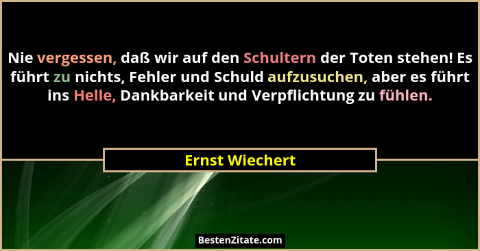 Nie vergessen, daß wir auf den Schultern der Toten stehen! Es führt zu nichts, Fehler und Schuld aufzusuchen, aber es führt ins Helle, Dankbarkeit und Verpflichtung zu fühlen.