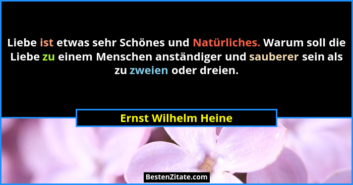 Liebe ist etwas sehr Schönes und Natürliches. Warum soll die Liebe zu einem Menschen anständiger und sauberer sein als zu zweien oder dreien.