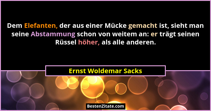 Dem Elefanten, der aus einer Mücke gemacht ist, sieht man seine Abstammung schon von weitem an: er trägt seinen Rüssel höher, als alle anderen.
