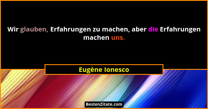 Wir glauben, Erfahrungen zu machen, aber die Erfahrungen machen uns.