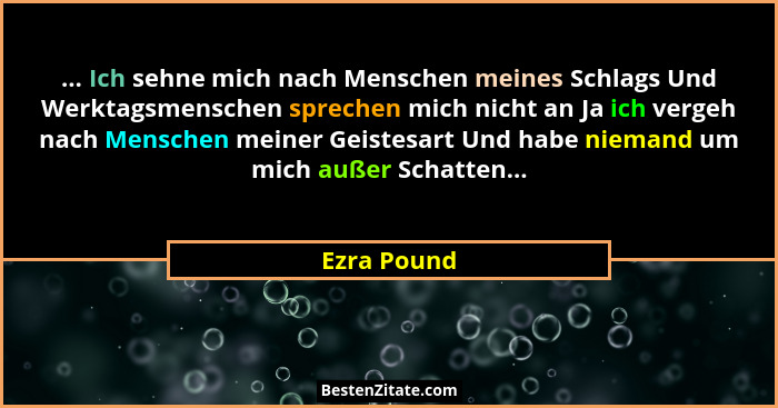 ... Ich sehne mich nach Menschen meines Schlags Und Werktagsmenschen sprechen mich nicht an Ja ich vergeh nach Menschen meiner Geistesart Und habe niemand um mich außer Schatten...