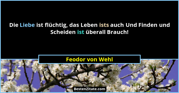 Die Liebe ist flüchtig, das Leben ists auch Und Finden und Scheiden ist überall Brauch!