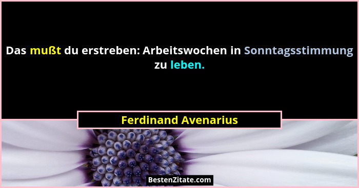 Das mußt du erstreben: Arbeitswochen in Sonntagsstimmung zu leben.