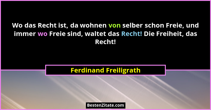Wo das Recht ist, da wohnen von selber schon Freie, und immer wo Freie sind, waltet das Recht! Die Freiheit, das Recht!